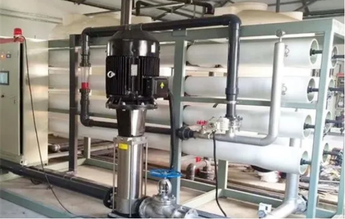 单级反渗透设备又称为一级反渗透,原水经过预处理系统、精密过滤器,再通过高压泵,再将原水送至反渗透装置,直接产出的水称为单级反渗透。