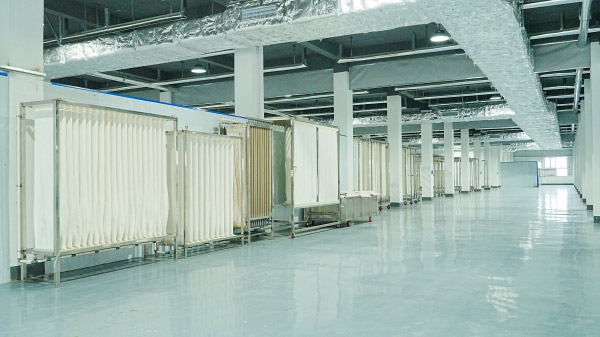 山东金宇膜科技发展有限公司的MBR帘式膜组件,以聚偏氣乙烯(PVDF)为膜分离功能层,耐酸碱、耐氧化。使用聚酯内衬复合增强技术,膜丝拉伸强力大于200N。公司研发了渗入内嵌式涂布技术,聚偏氣乙烯涂层均匀、开孔率提高、结合力增