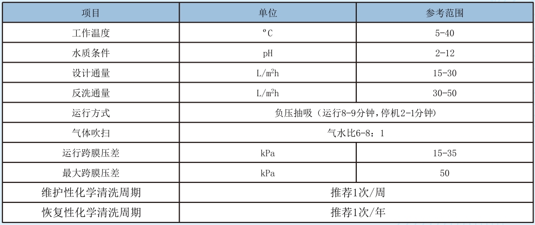 化学清洗周期与温度、水质、微生物、污染物等相关。当MBR膜的通量低于设计通量20%,及时进行维护性化学清洗。