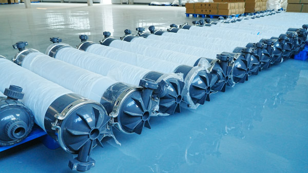 2.PVDF膜材料:柱式超滤膜PVDF膜丝不仅具有优异的耐化学性,还具有良好的抗污染性能。PVDF膜材料具有较小的孔径和高的截留率,能够有效地拦截水中的悬浮颗粒、胶体物质和微生物等污染物,保证了出水的清洁和安全。